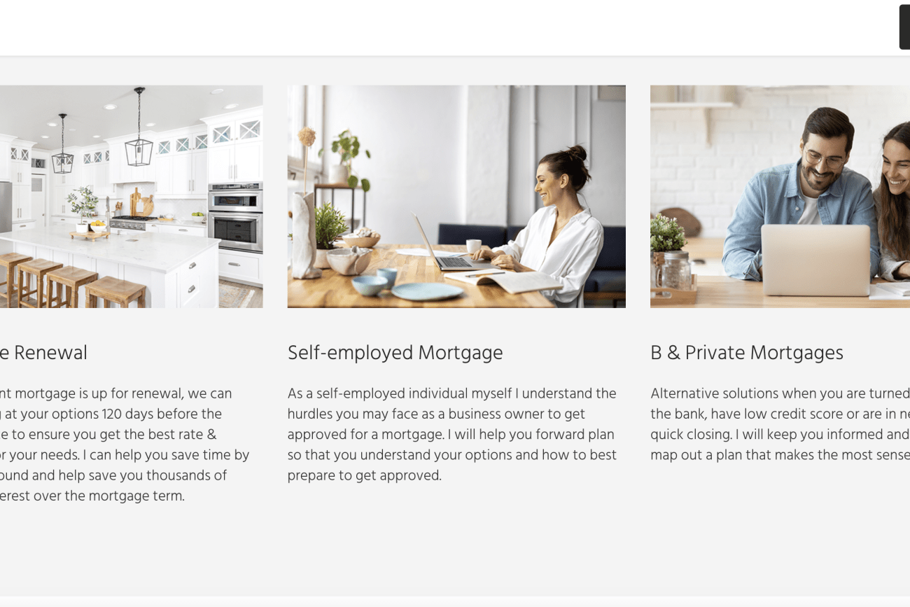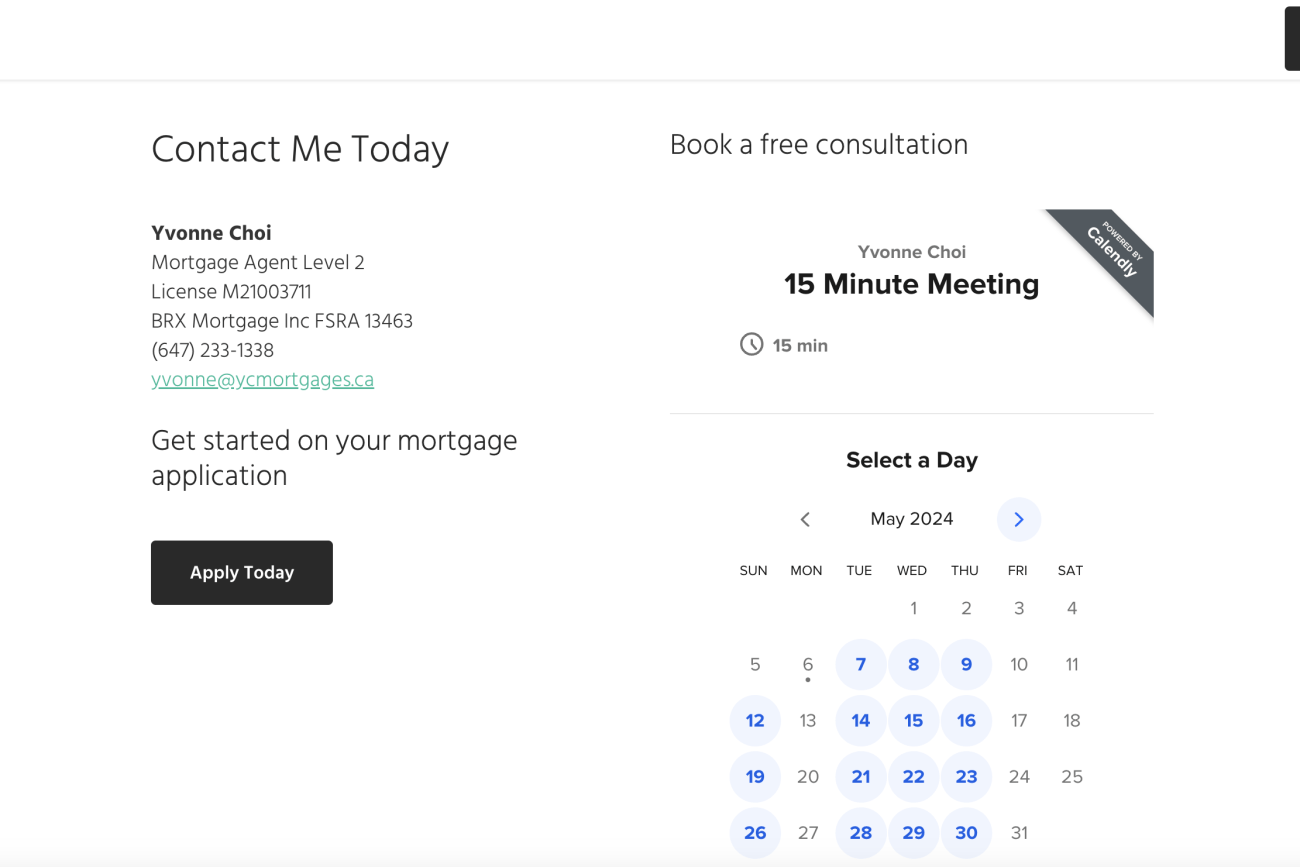 Discover the sleek simplicity of the one-page website we developed for Yvonne Choi, a dedicated mortgage agent at YC Mortgages. Our focused design provides an intuitive and seamless user experience, allowing clients to easily access all essential information without the need for navigation through multiple pages. This streamlined approach not only enhances user engagement but also positions Yvonne as a straightforward, efficient provider in the competitive mortgage industry.