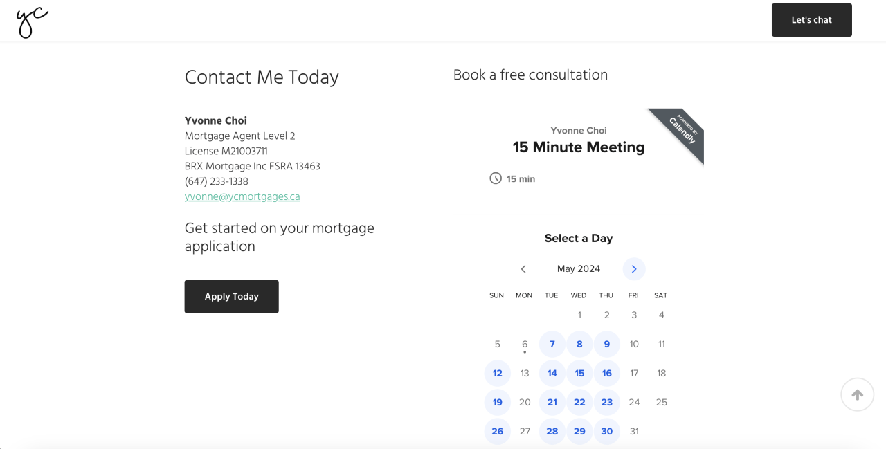 Streamlined Simplicity: YC Mortgages One-Page Website Design for Yvonne Choi